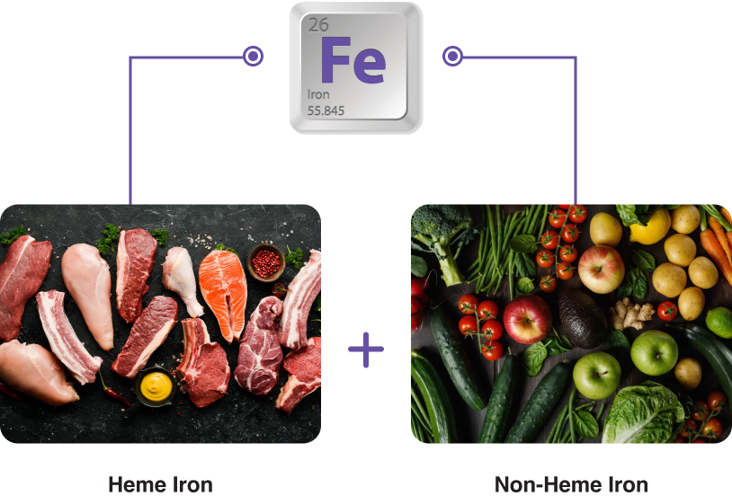 Enhanced iron absorption is possible when two different forms of iron – heme and non-heme – are taken together. These two types of iron may be absorbed through different mechanisms in the small intestine, enabling maximum absorption of iron, thus helping replete iron stores and restore energy in iron deficient people.