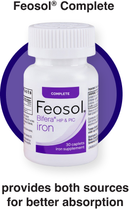 Because HIP and PIC iron are absorbed by different mechanisms, a supplement like Feosol® Complete with Bifera containing both forms of iron allows for maximum absorption.